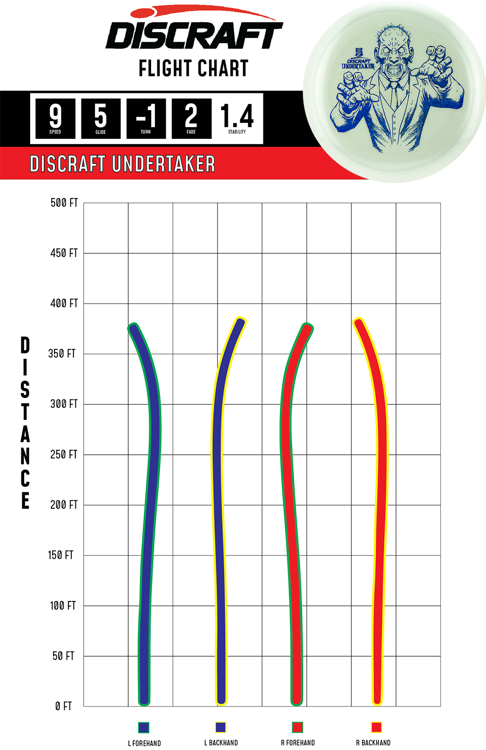 Master headwinds and precise drives with the Z Undertaker, a moderately overstable driver known for its consistent flight and reliability. The Z plastic offers a firm feel and exceptional durability, making it perfect for handling challenging conditions. This disc provides a slight turn in flight followed by a manageable fade, ensuring accurate placement on both backhand and forehand throws. The Z Undertaker's versatile flight path makes it an excellent choice for players seeking a dependable driver that excels in a variety of situations. Whether you're navigating tight fairways or facing strong winds, the Z Undertaker delivers the control and stability you need.