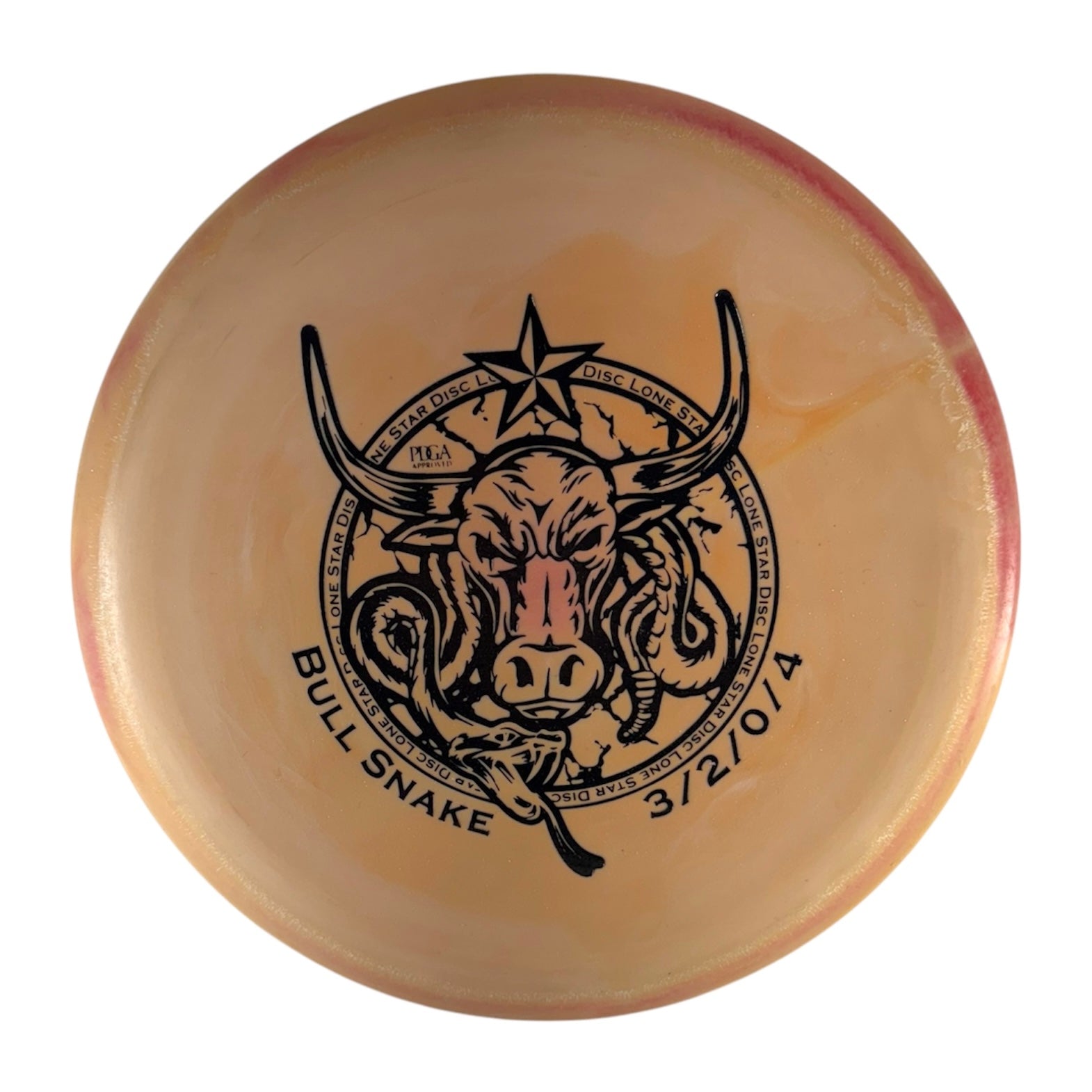 The Bull Snake is an overstable Putt and Approach disc that features a strong shoulder, a microbead, and an elongated wing.