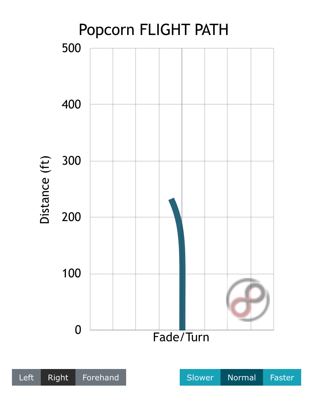 With a well-rounded rim and shoulder, the Popcorn offers a comfortable grip whether in a power grip, fan grip, or a forehand grip. This comfort with your grip offers you good control over the disc.