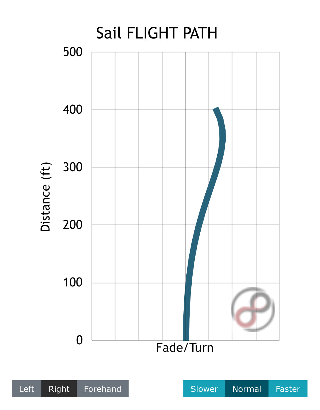 The Sail is an understable distance driver from DGA, meant to provide a wide range of players a disc with a wide array of possible uses. With a high glide rating, this driver will allow new players to increase their driving distance, as the Sail will remain aloft with lower speed drives. This disc is great for shots meant to end without fading back.