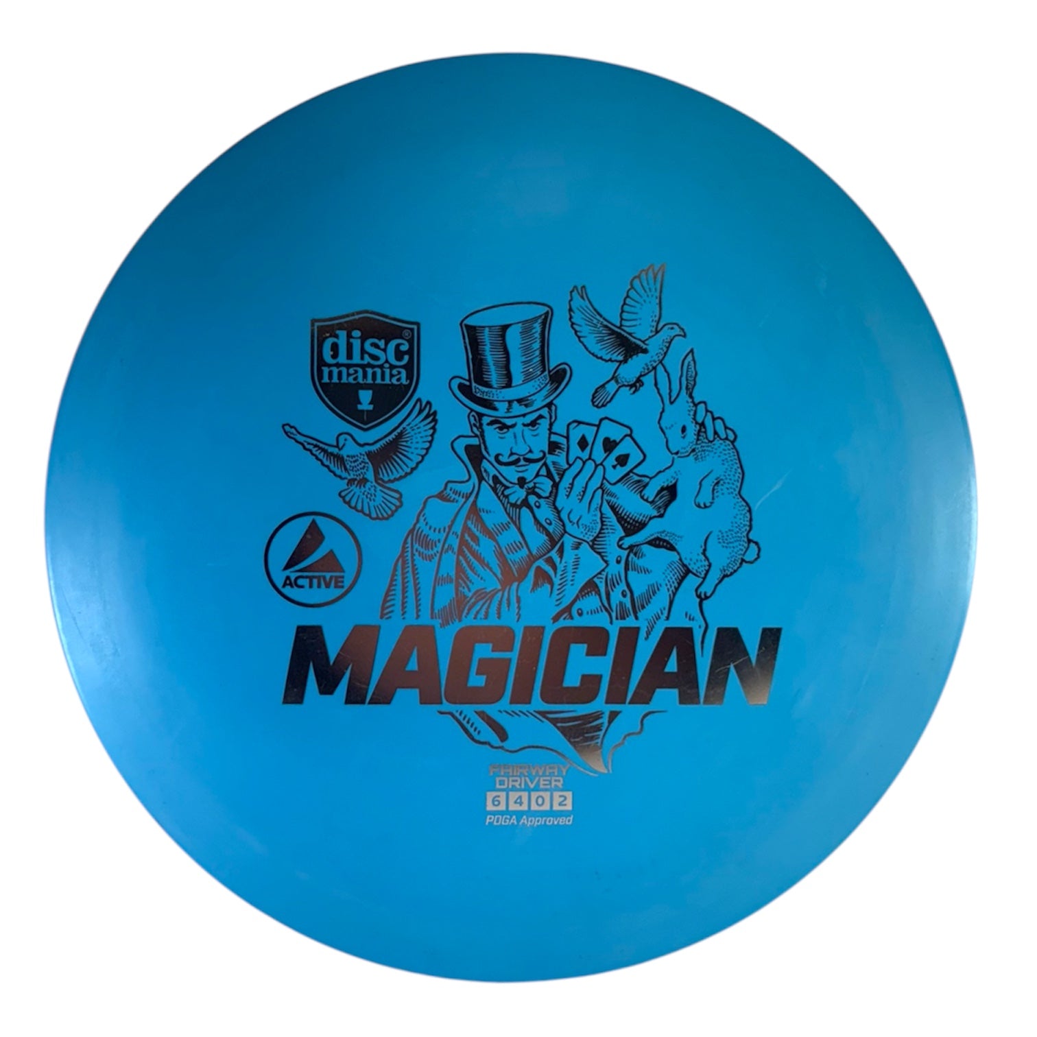 The Magician is a stable fairway driver designed to give all players a fairway driver that can be trusted in all conditions. The Magician flies straight with minimal turn and a reliable fade at the end giving this disc a flight that can be trusted and repeated. The stability of the Magician allows it to be a great forehand approach disc in addition to its backhand capabilities. Rated at a speed 6, the Magician has a smaller rim that makes this disc comfortable for all hand sizes. The Active plastic is the perfect balance between keeping the disc firm as well as soft to the touch meaning the disc always feels comfortable and natural in the hand.
