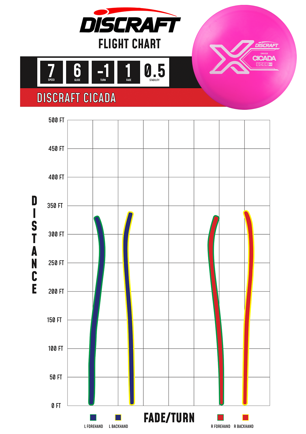 The Discraft Cicada is designed to be a hyzer-flip machine. Beginners and intermediate players will love that with a smooth, controlled release, this disc will fly dead straight. With a smash, this disc will carve up long arcing turnovers and execute perfect rollers. As a proud addition to Discraft's lineup, the Cicada thrives, elevating the game of disc golf and complementing their legacy of excellence.
