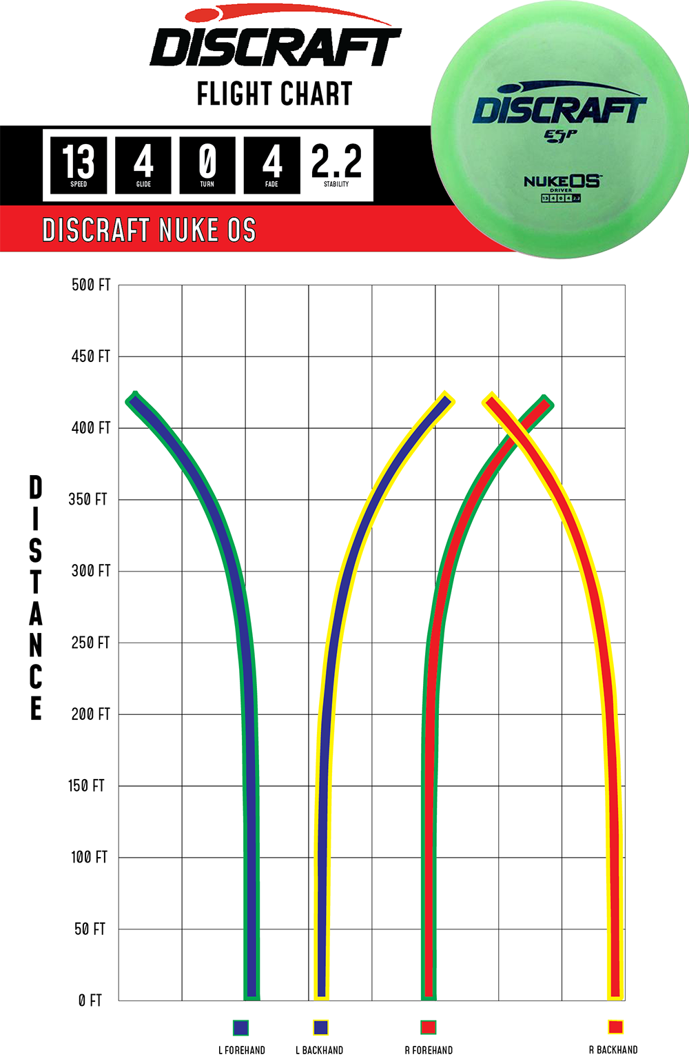 The extra overstable version of the popular Discraft Nuke, the Nuke OS is made for advanced players with the most powerful arms. This disc has the same thick 2.5cm rim that the Nuke offers, but will finish its flight with a sharp overstable fade every time. Players who throw discs this hard are going to want them to maintain their flight characteristics. The Nuke OS is available in the hard, ultra-durable Elite-Z plastic.