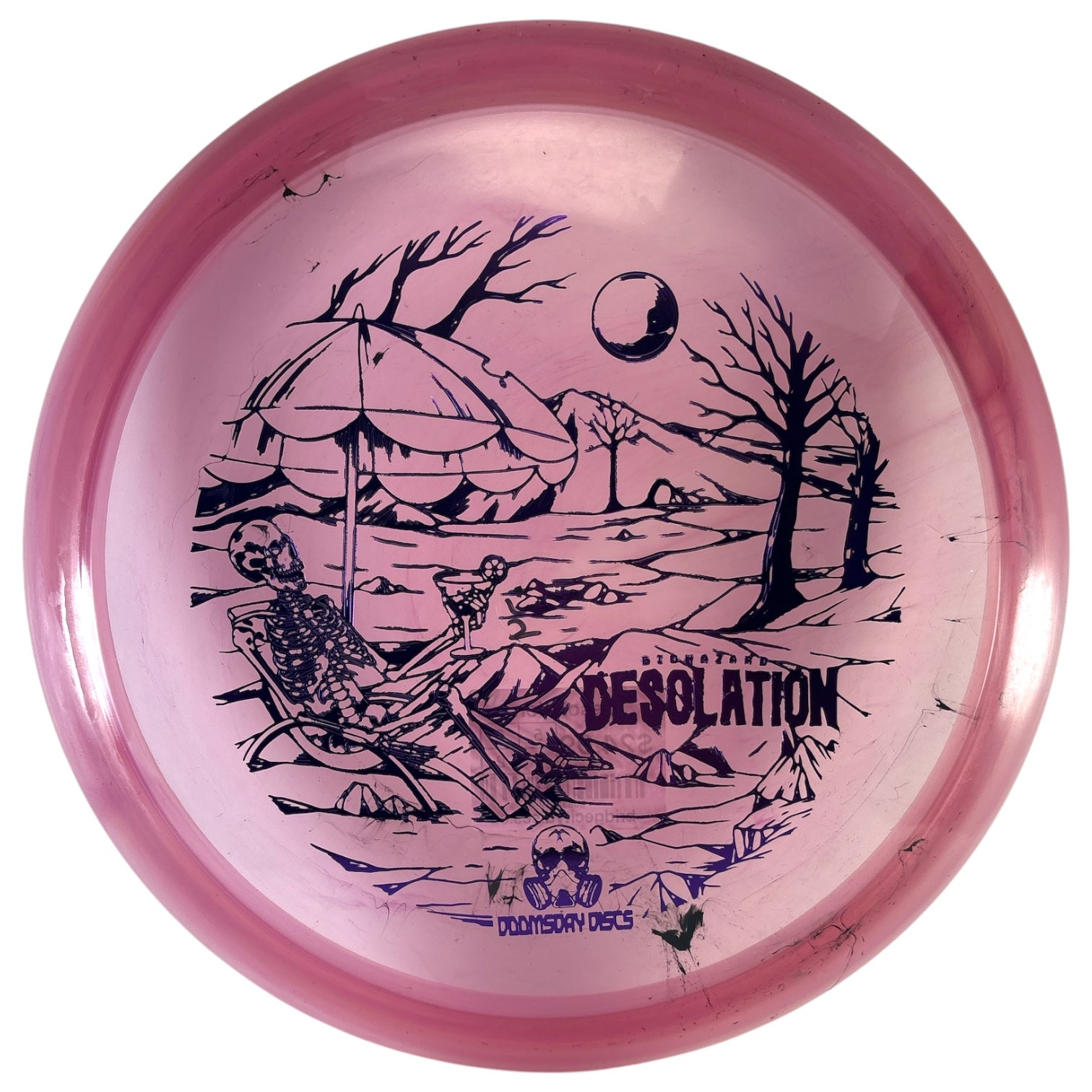 The Desolation, from Doomsday Discs, is an all-purpose, overstable midrange. It has a straight flight that finishes with a moderate, consistent fade. It has smoothed-rim edges and a semi-deep rim to make it very comfortable for throwing and a go-to for seasoned players. It is part of the Catastrophic Line, and made in the USA for high performance that will last to the end of the world (which may come sooner rather than later).