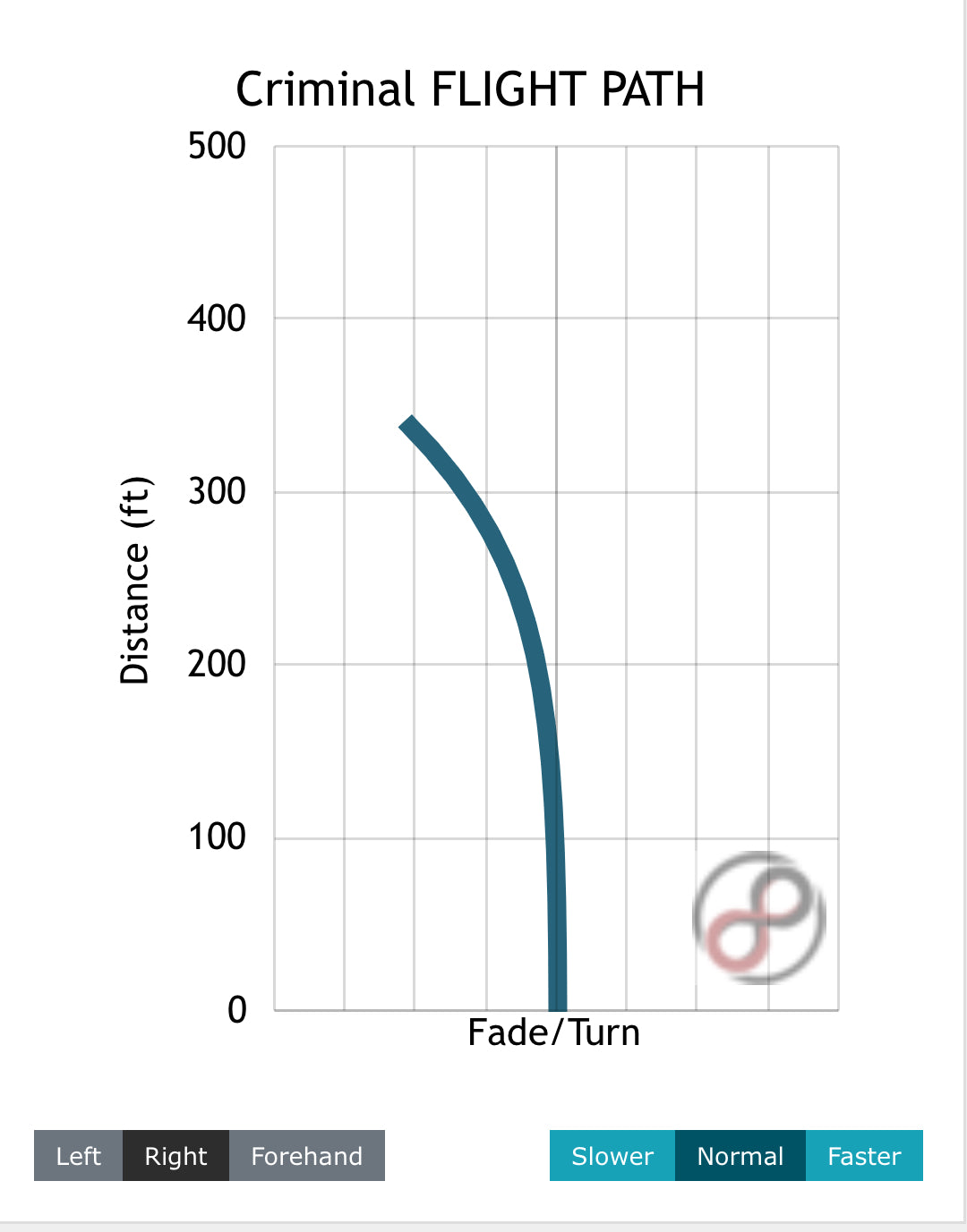 Dynamic Discs presents a Criminal that you might not mind getting to know. With more glide than the Felon and more stability than the Convict, this Criminal is exactly what you need to assault the disc golf course and improve your game. This fairway driver can be trusted to cover the ground necessary without giving up the stability you need for confident throws. If you want a hard-turning, overstable driver, it might be time to introduce a Criminal element to your game.