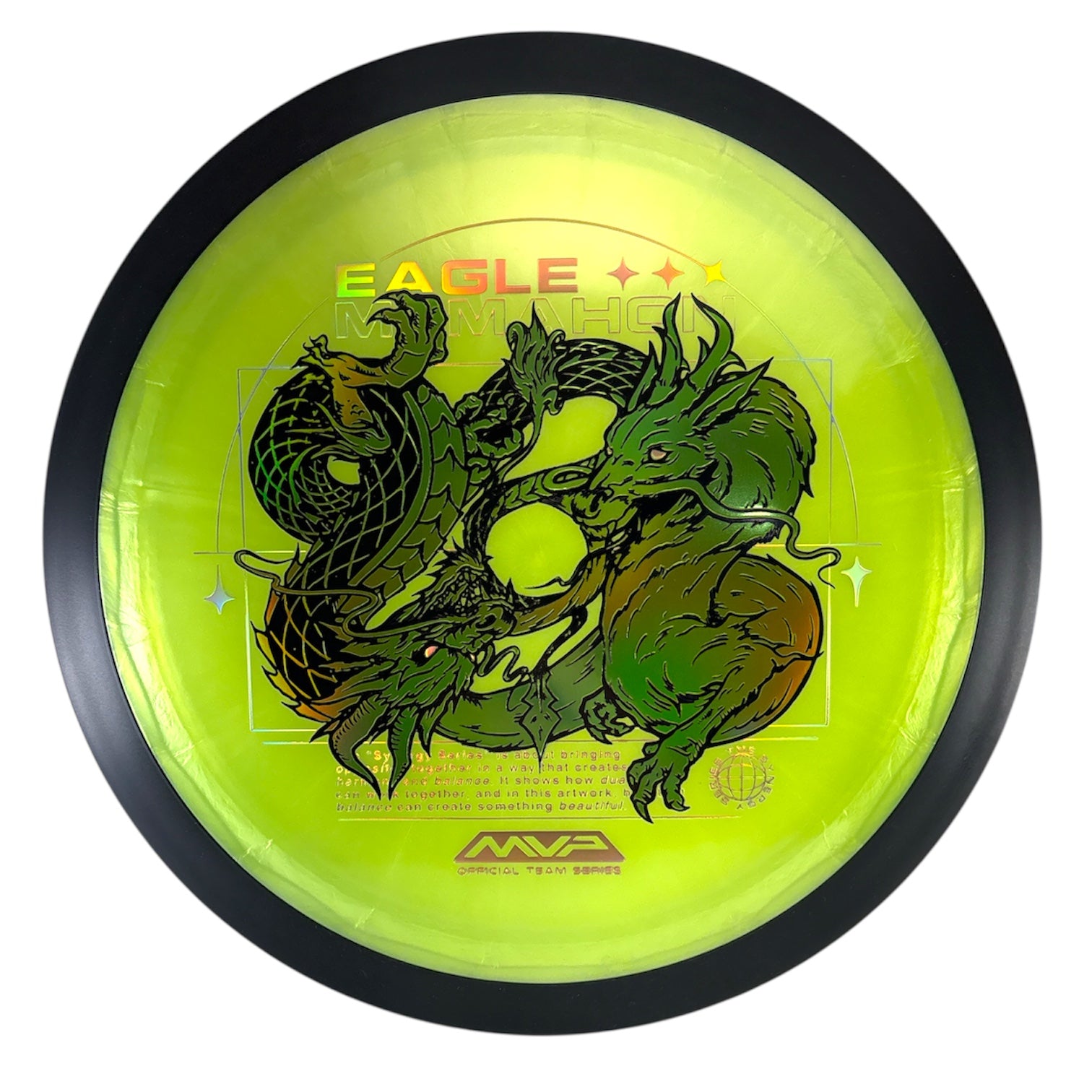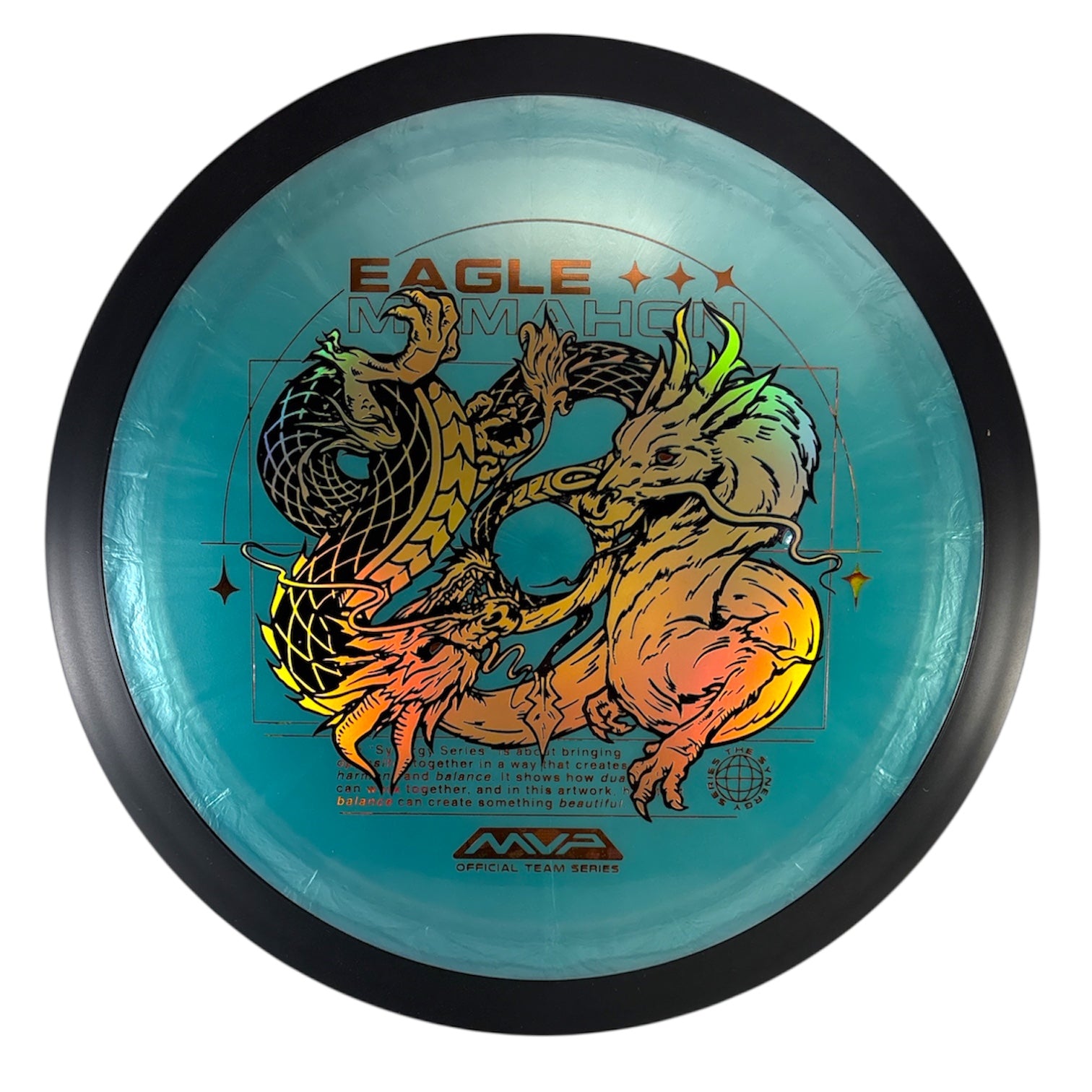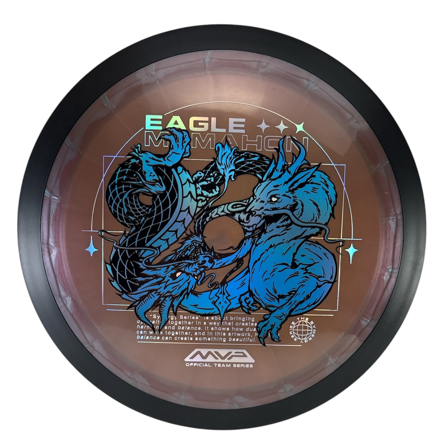 Plasma Dimension – Eagle McMahon Team Series: The next Eagle McMahon Team Series disc in his new Synergy Series of stamps, illustrated once again by the impeccable Green C Studio, the Plasma Dimension! One of Eagle’s most used drivers, the Dimension is a demanding, 14.5 speed overstable driver with power-resistant stability and his first choice for his new series of stamps centered around the concept of duality in harmony. High power players will be able to manipulate stable lines as needed, while advanced and beginner players will have one of the strongest headwind fighters their bag could have. Find out why Eagle keeps his Dimension close by trying your own today!