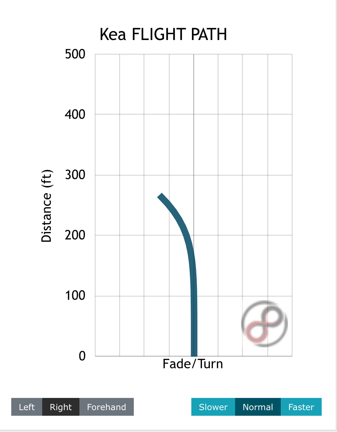 The Kea is a small-diameter, overstable midrange disc. It is a great choice for short, accurate, predictable drives off the tee or for upshots when you need to fight wind and hit the green with ease. It is also a perfect choice for forehand drives and power backhand throws.