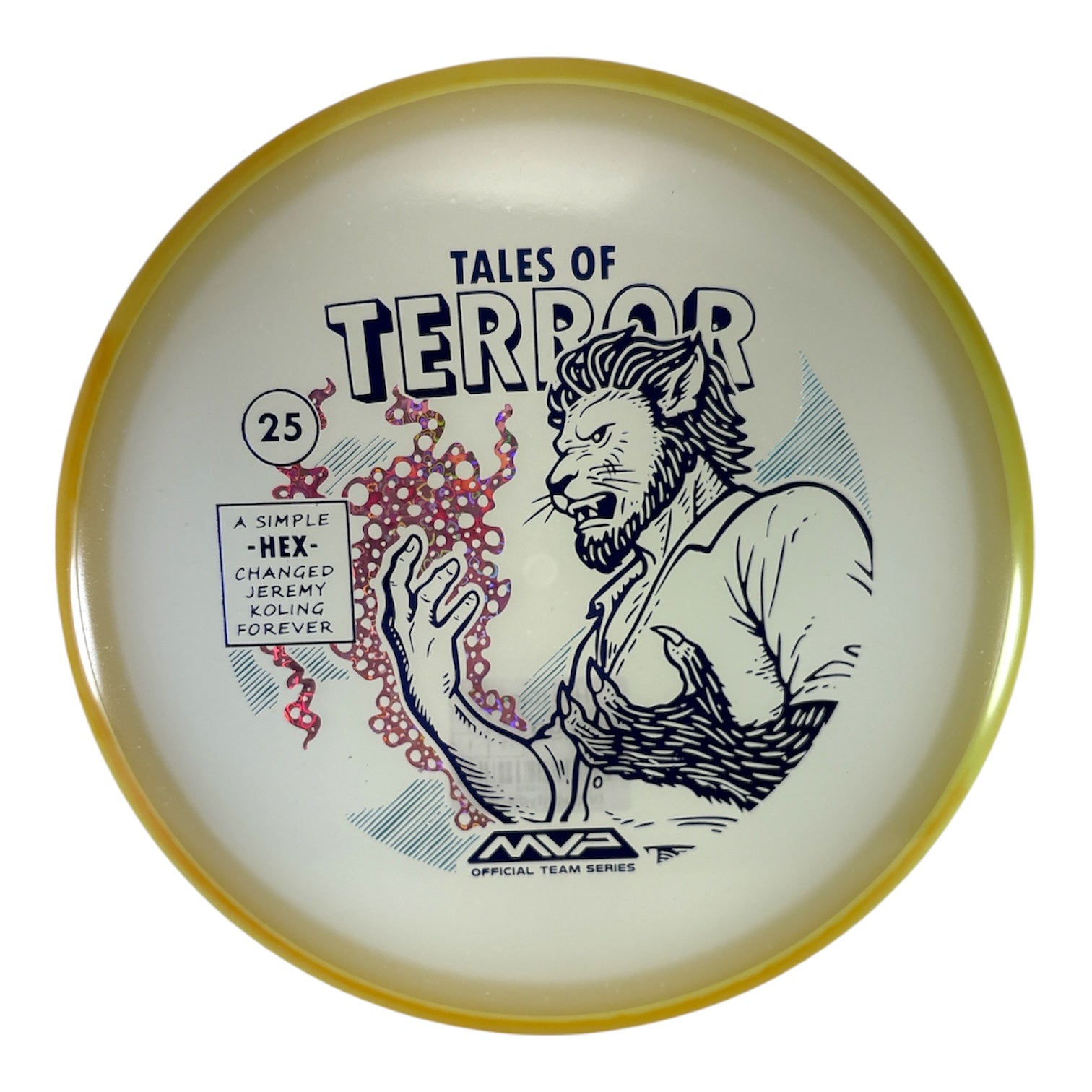 DoubleRam Design shows us the terrifying alternate origin of Jeremy Koling’s childhood nickname - Lionheart - on the new Particle Eclipse Hex! Made with our industry-leading Eclipse plastic, this new blend of glow with colorful particles inside gives the disc its own magical feel. As a straight flying midrange, the Hex is set to become even more mesmerizing than before with its straight to understable flight allowing for exceptionally easy line shaping - showcasing why the Hex is one of the most versatile discs around. Unleash your inner beast and shred the course with the Particle Eclipse Hex, available at your favorite local or online MVP dealer!