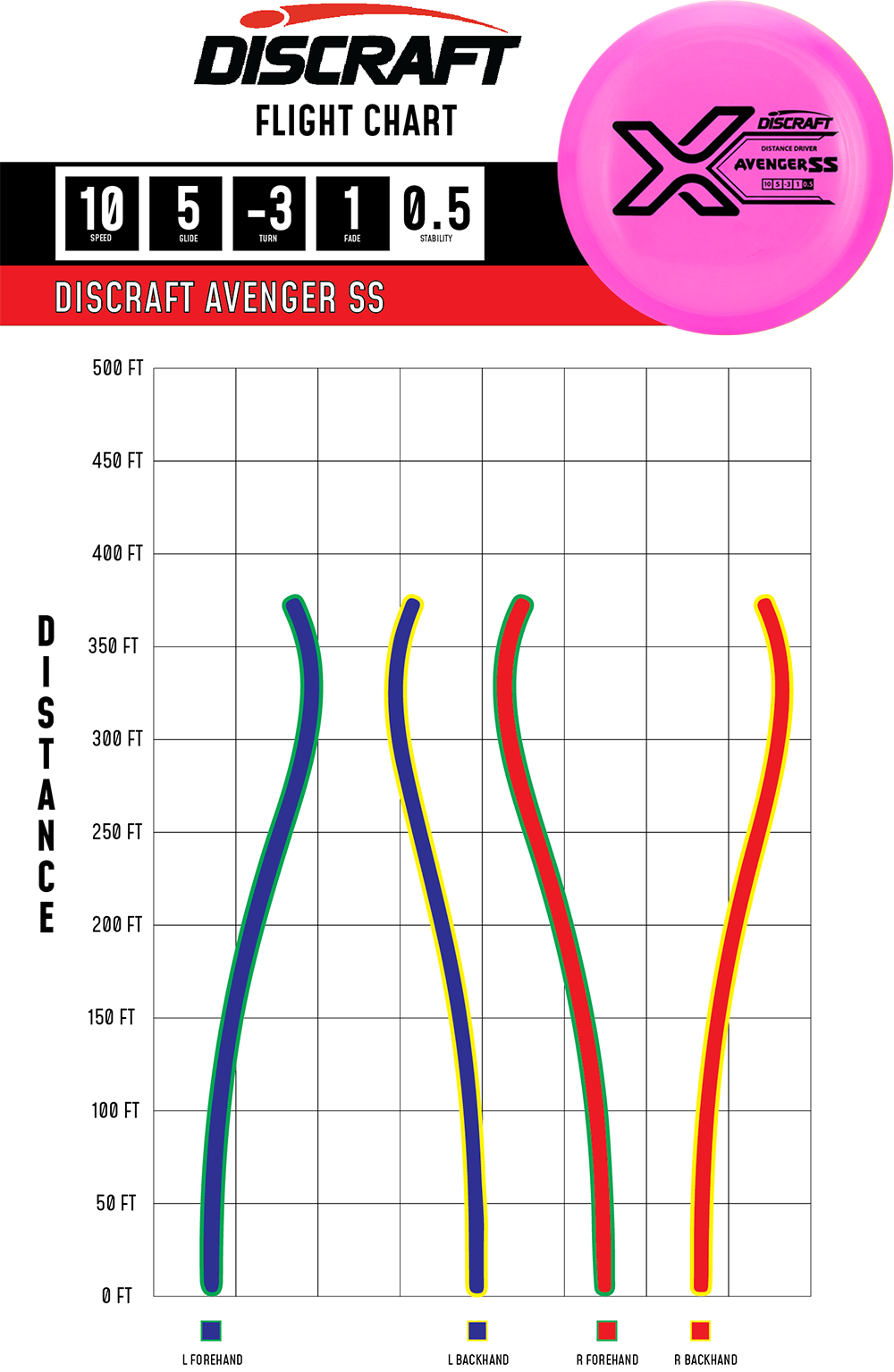 The beginner friendly Avenger SS gives some added understability to the Avenger driver with an easily activated turn for long flying shots or distance roller shots when thrown with power.