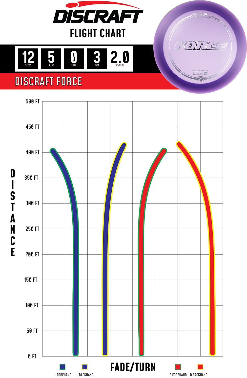 If you're throwing hard for maximum distance, reach for the high performance Force.™ This is Discraft's fastest overstable driver, with a wide rim and jaw-dropping glide that delivers a new level of distance potential. It's intended for experienced players who throw with power.